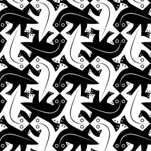 The tessellated lizard tiles are based on a painting by M. C. Escher.