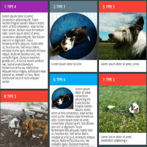 Content is positioned on the 3 grids to give an overlapping 3D effect.