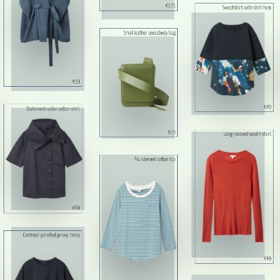 A "masonry" style eCommerce grid where the background, photo and product details/border sit on 3 different levels. The levels move with the mouse and align for a particular product as the user moves the mouse over it.