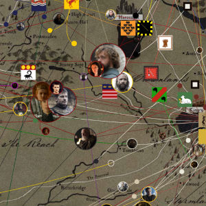 This map shows all the major houses and institutions of the Game of Thrones world with the many, many allegiances and connections to the hundreds of characters in the show.