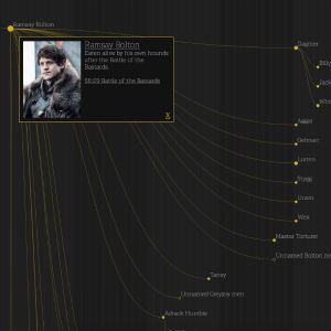 The data was scraped from the excellent Game of Thrones wiki and the data representation is implemented using Mike Bostock's marvellous D3 library.